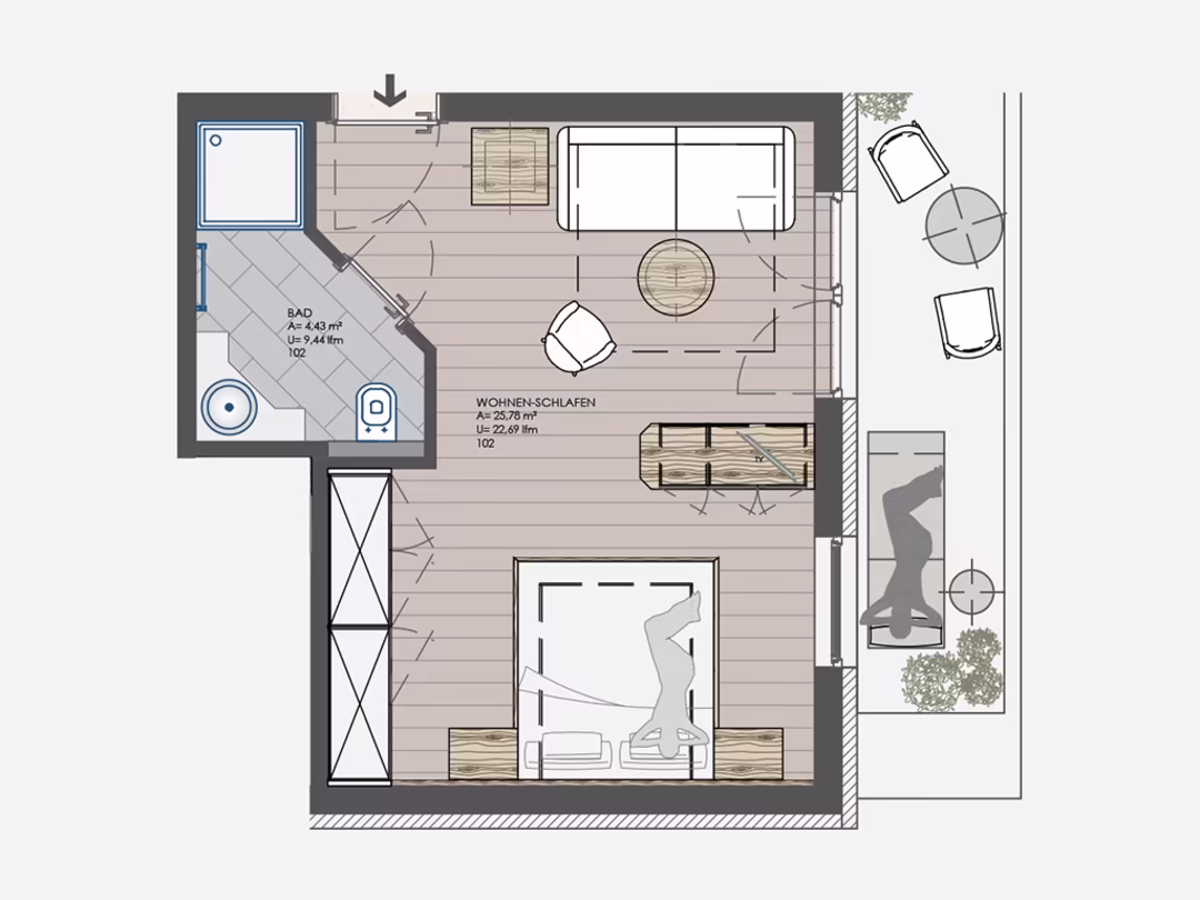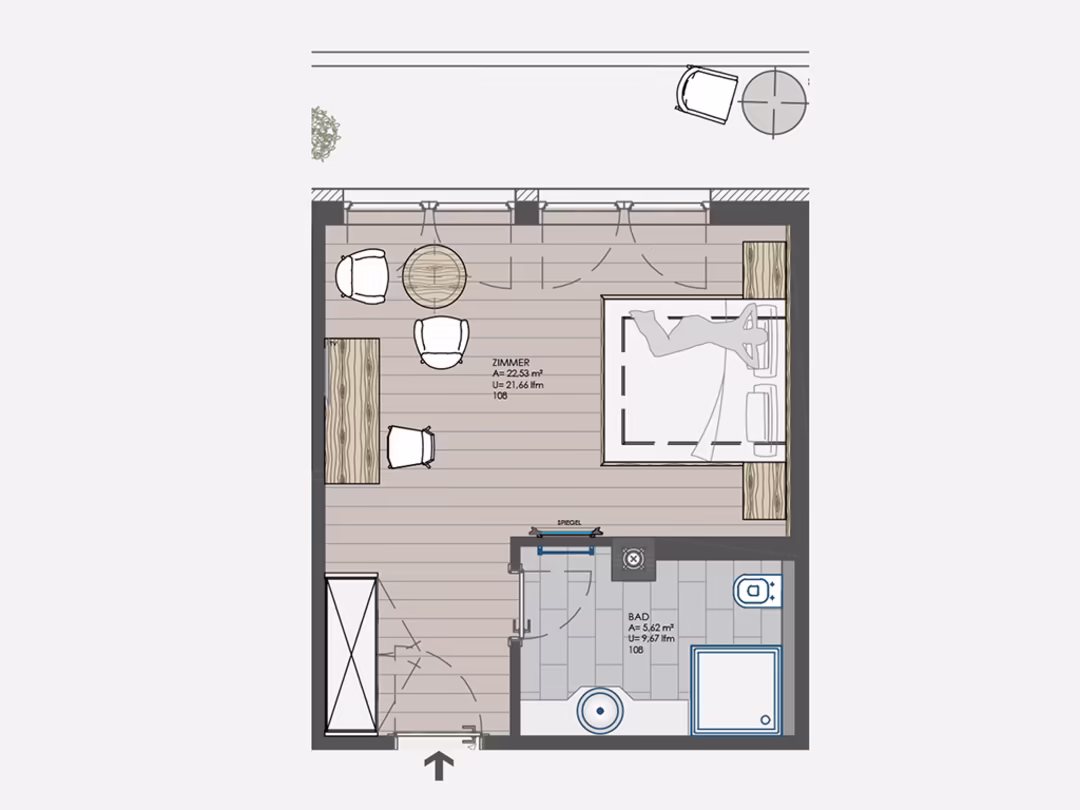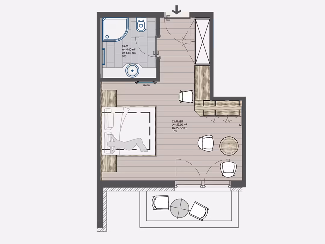 Standard Doppelzimmer mind. 2 bis max. 2 Personen ca. 30 m² Zimmer 103 & 108